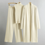 This three-piece pant set delivers a calm and refined look designed for spring and warm-season styling. The coordinated layers create a relaxed yet polished silhouette, making it ideal for everyday wear, casual office settings, or elevated daytime outings. Its clean lines and balanced proportions offer effortless elegance with all-day comfort.