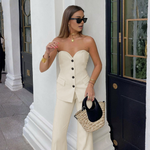 Olivia | Women's Strapless Buttoned Top & Flared Trousers Set