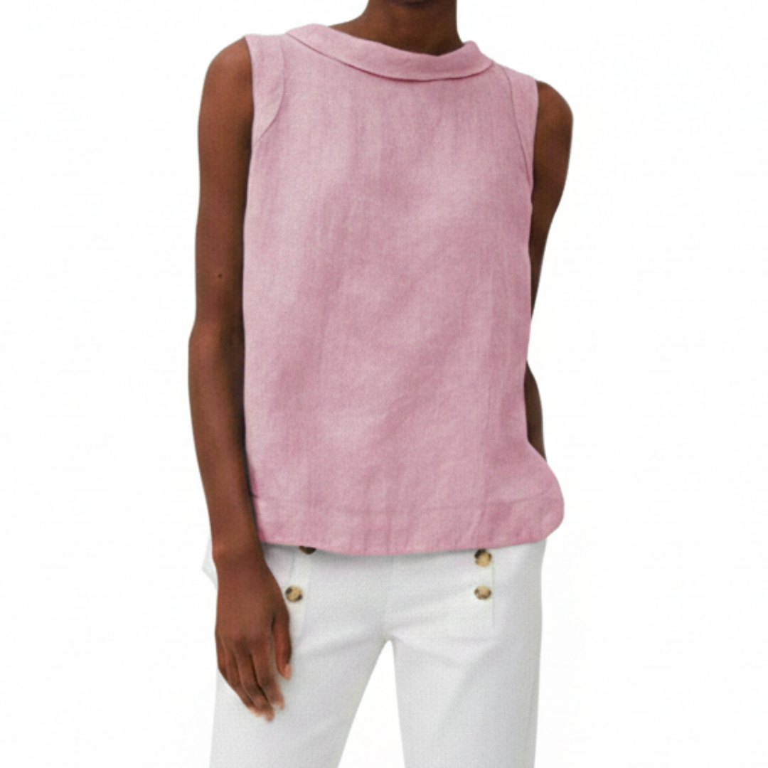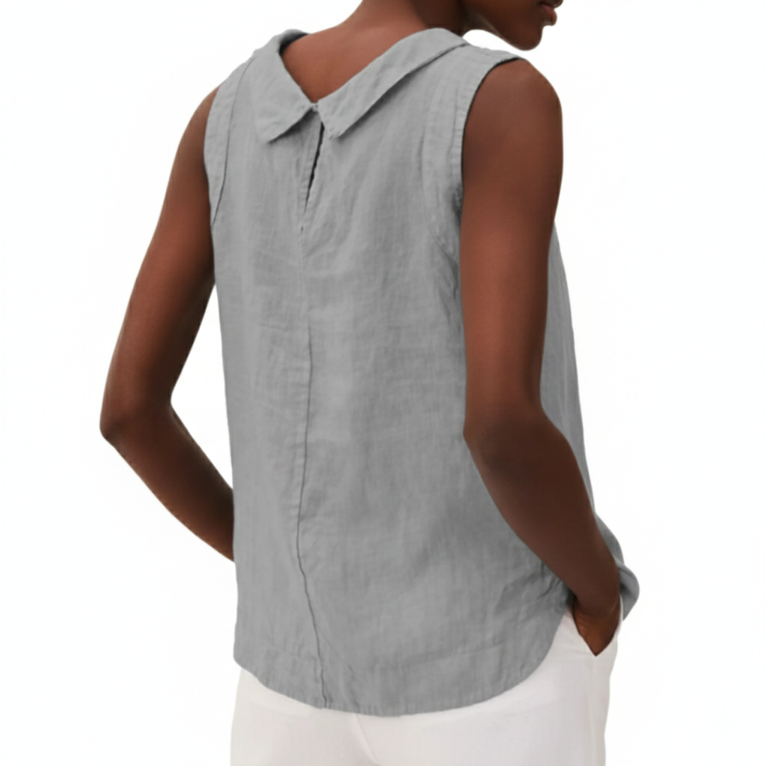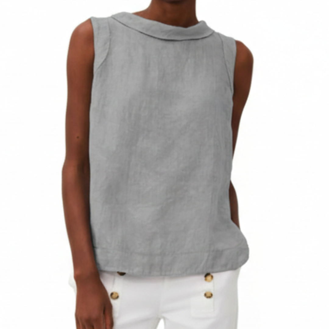Kayla | Women Summer Linen Blouse Sleeveless Foldover Neck Seam Detail