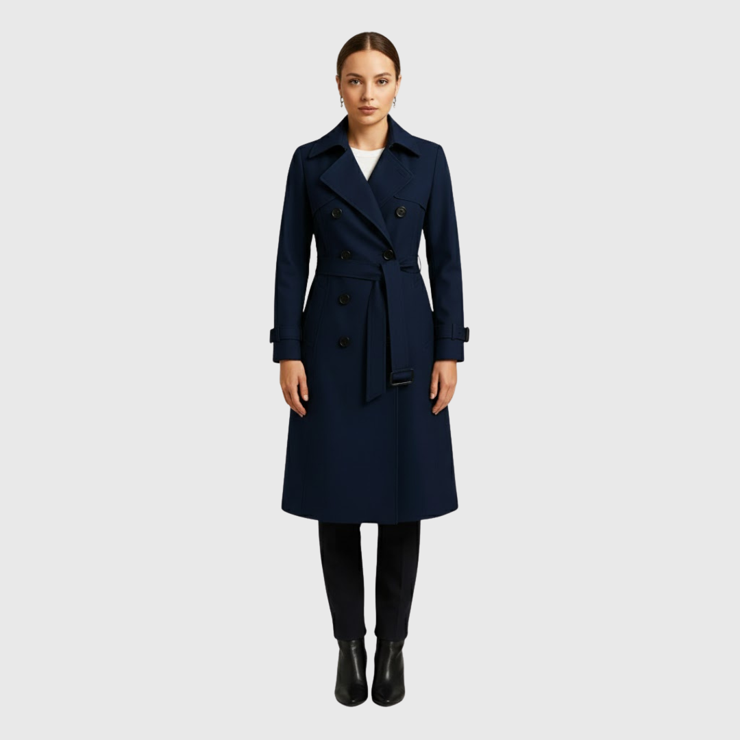 Der Damen-Langmantel vereint Struktur und Vielseitigkeit in einem zeitlosen Design. Mit seiner klaren Silhouette, den klaren Linien und dem verstellbaren Taillengürtel lässt er sich das ganze Jahr über problemlos zu verschiedenen Anlässen und Jahreszeiten tragen.