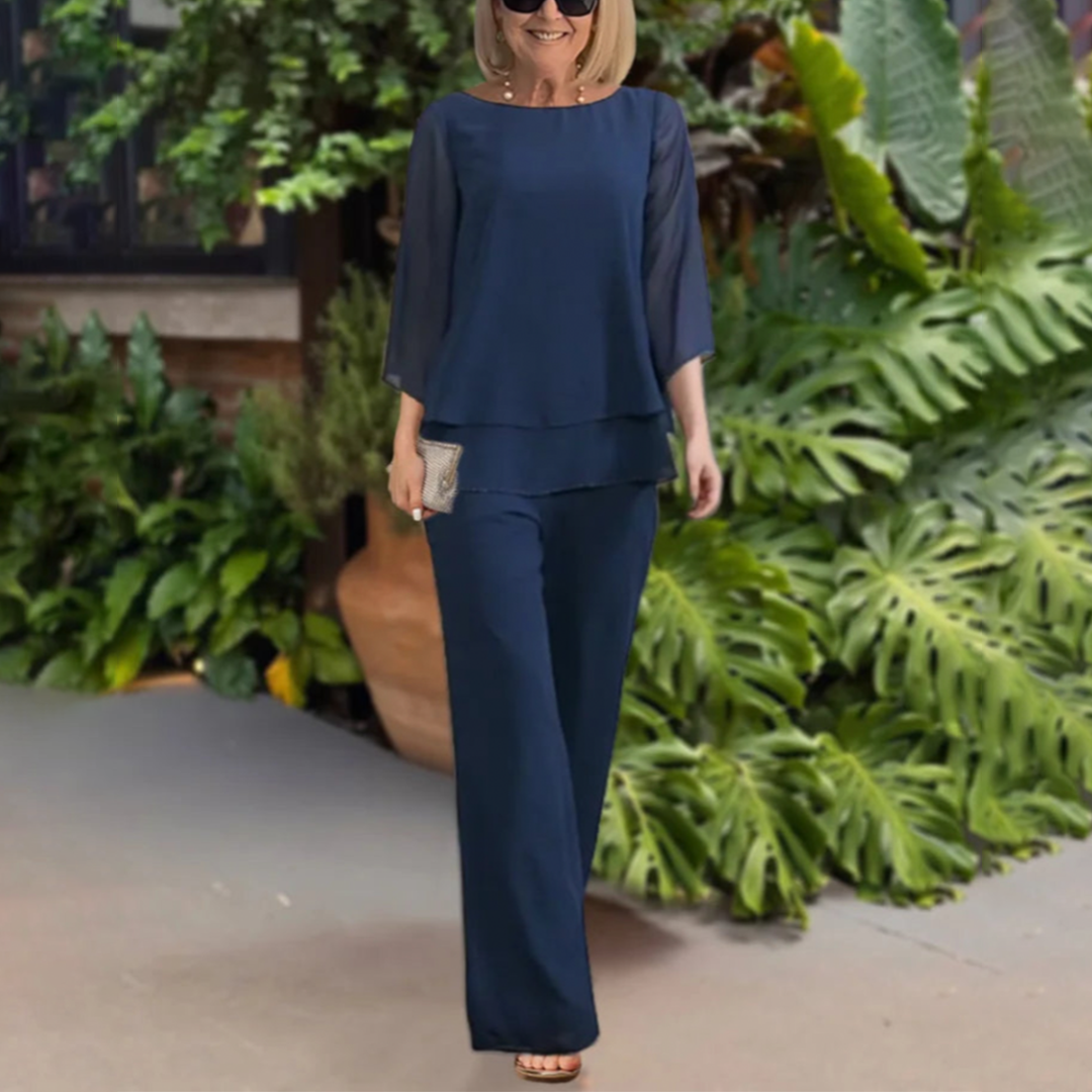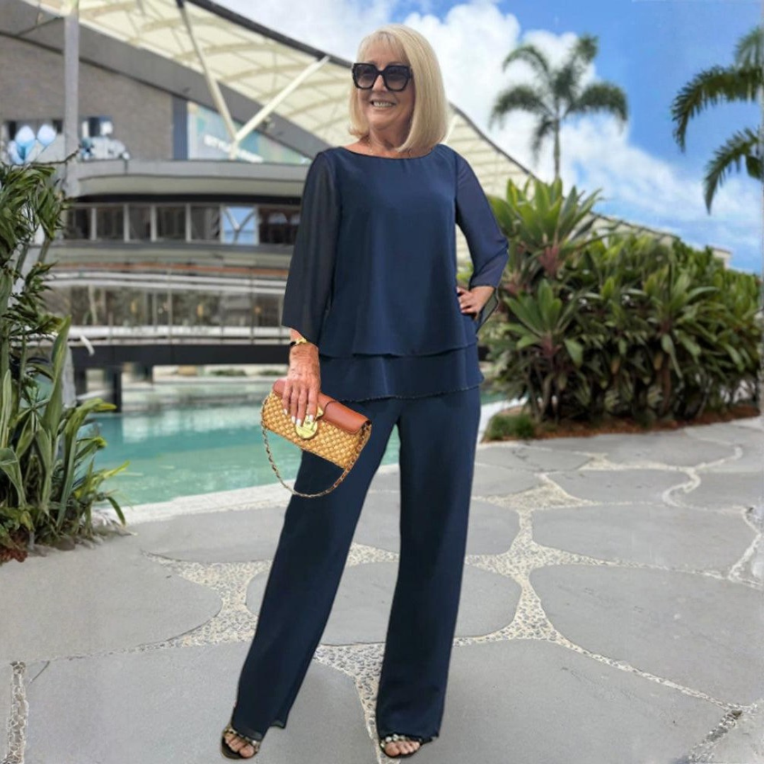 Coordinated Two-Piece Design: The matching top and trousers create a polished and put-together look that feels easy and refined for summer days.
