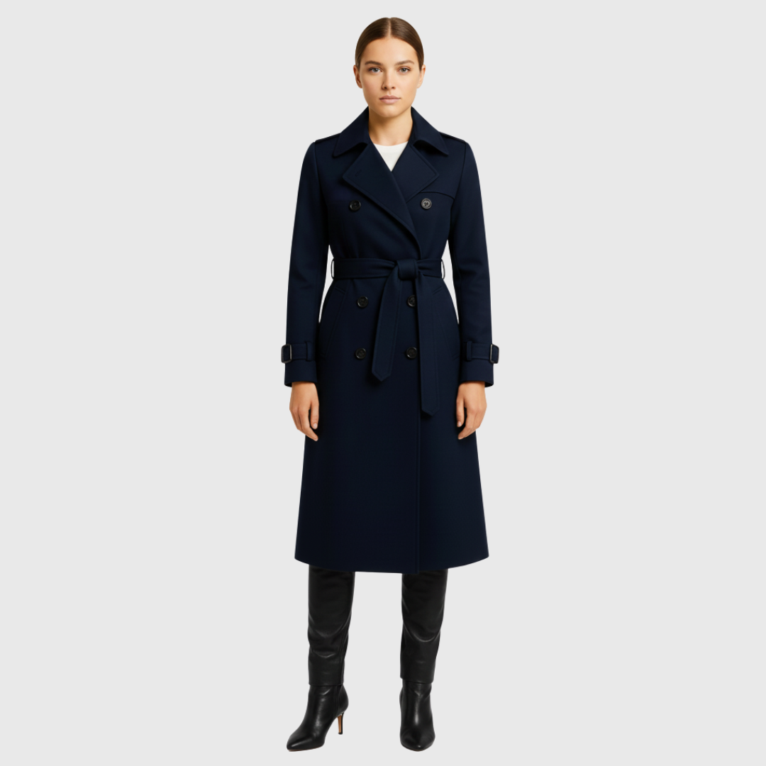 Women's Long Coat | Double-Breasted | With Belt