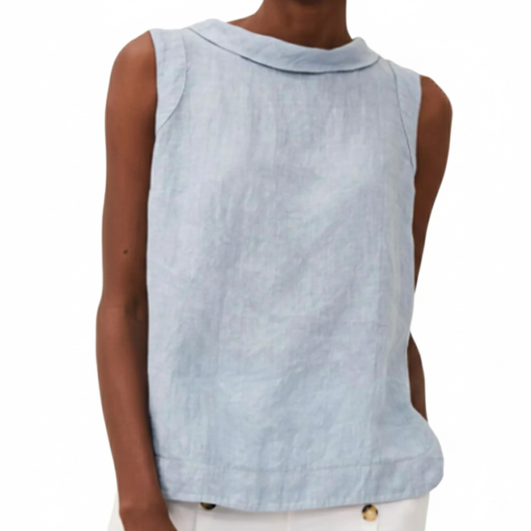 Kayla | Women Summer Linen Blouse Sleeveless Foldover Neck Seam Detail