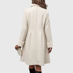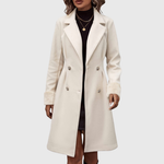 Dieser lange Damen-Wintermantel verfügt über eine zweireihige Knopfleiste und einen strukturierten, taillierten Schnitt, der unterhalb des Knies endet. Klare Linien, definierte Revers und gerade Ärmel sorgen für eine ausgewogene Silhouette, die sich für die Wintersaison und den Alltag eignet.