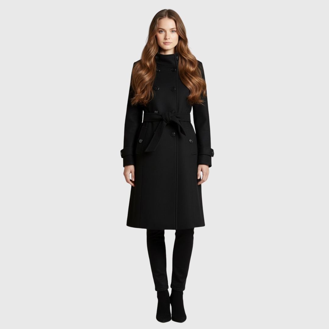 WARUM DIESEN LANGEN DAMENMANTEL MIT ZWEIREIHIGER KNOPFLEISTE WÄHLEN?