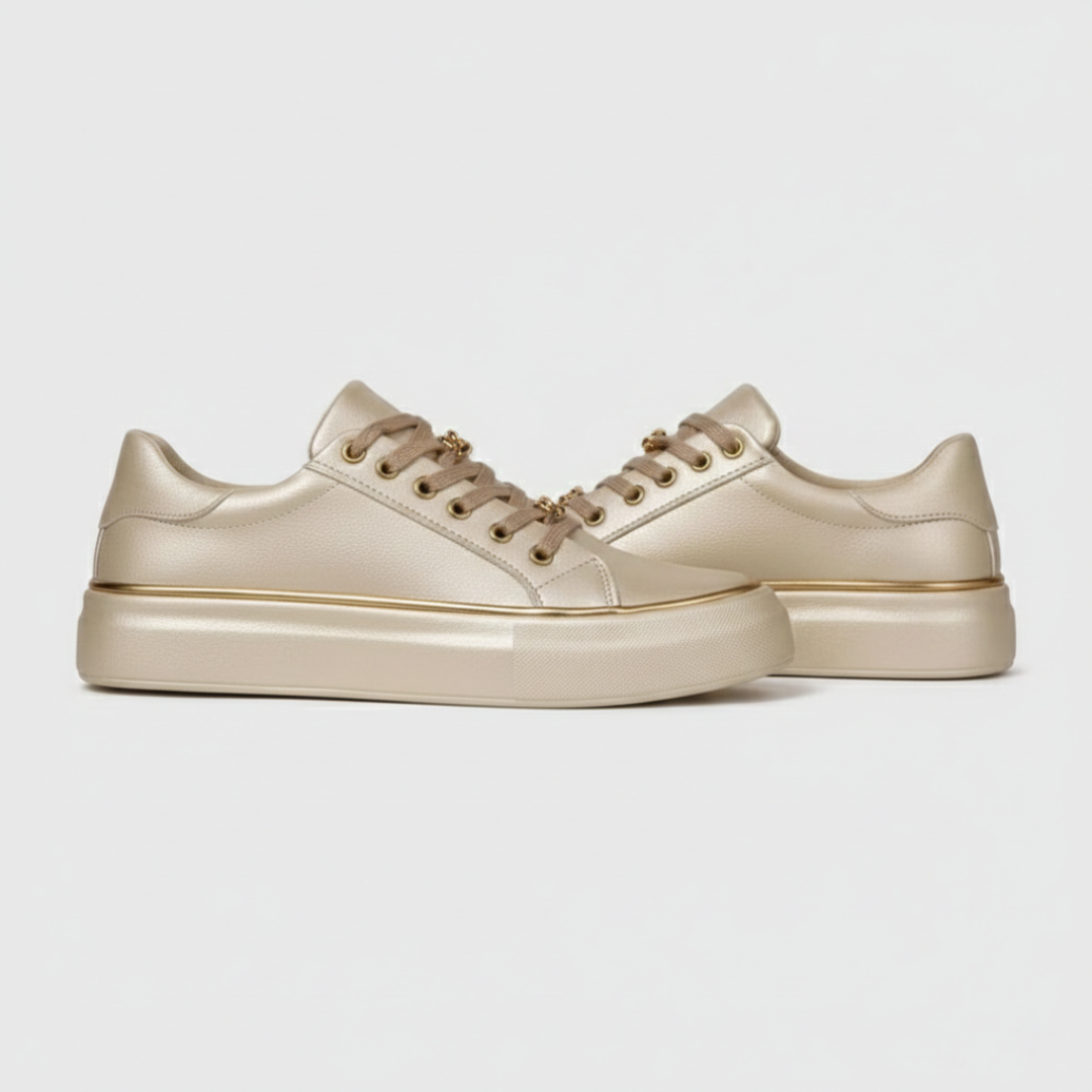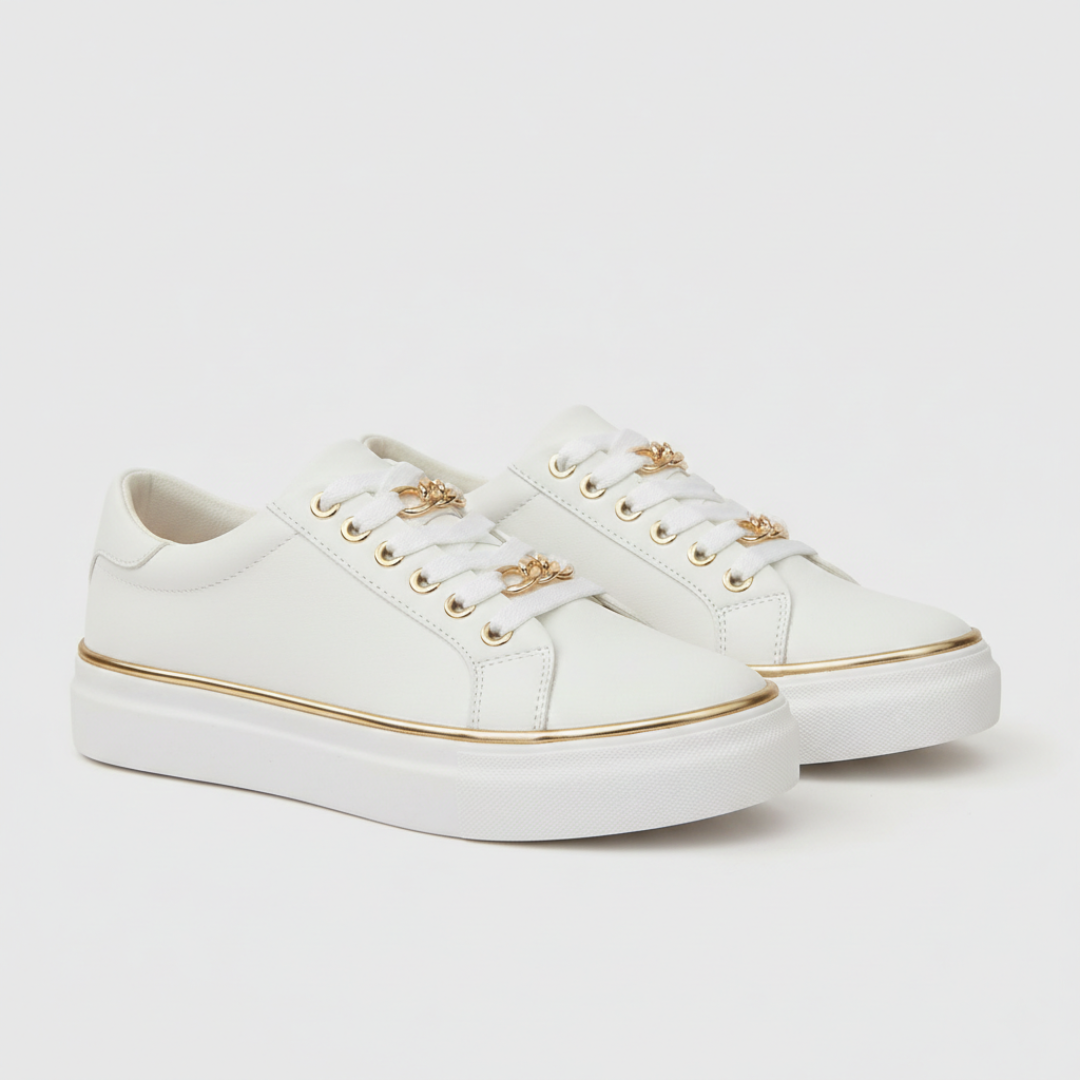 Charming Design Details: The decorative lace accents and smooth finish add a touch of elegance, elevating these sneakers for both style and practicality.