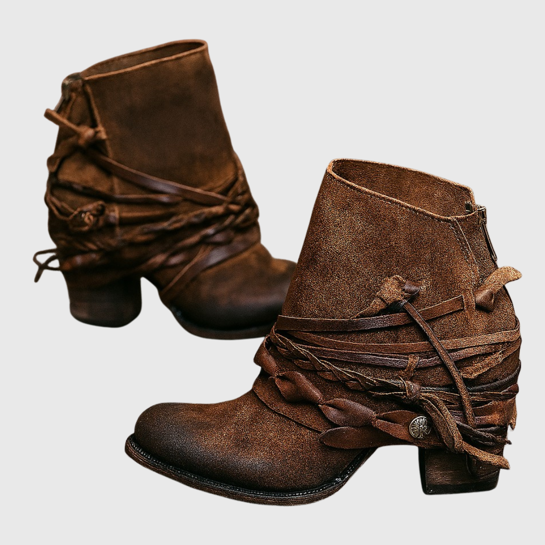 Damen-Ankle-Boots im Boho-Western-Stil mit Blockabsatz