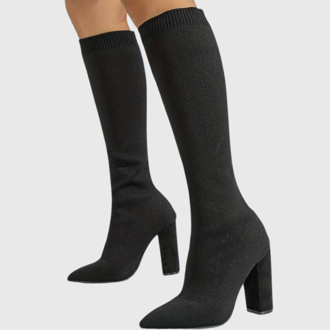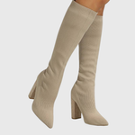 Damen-Kniehohe Stiefel mit Blockabsatz und Sockenschaft