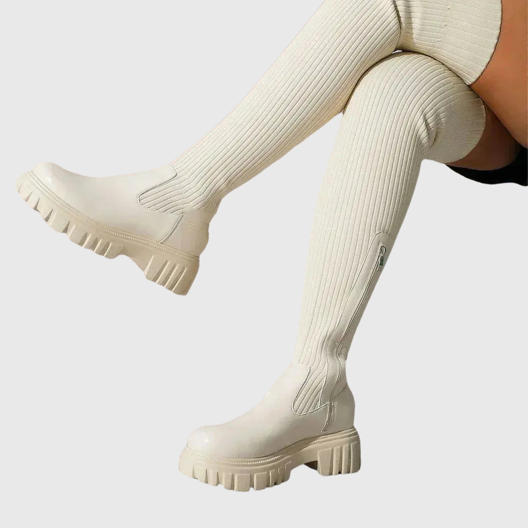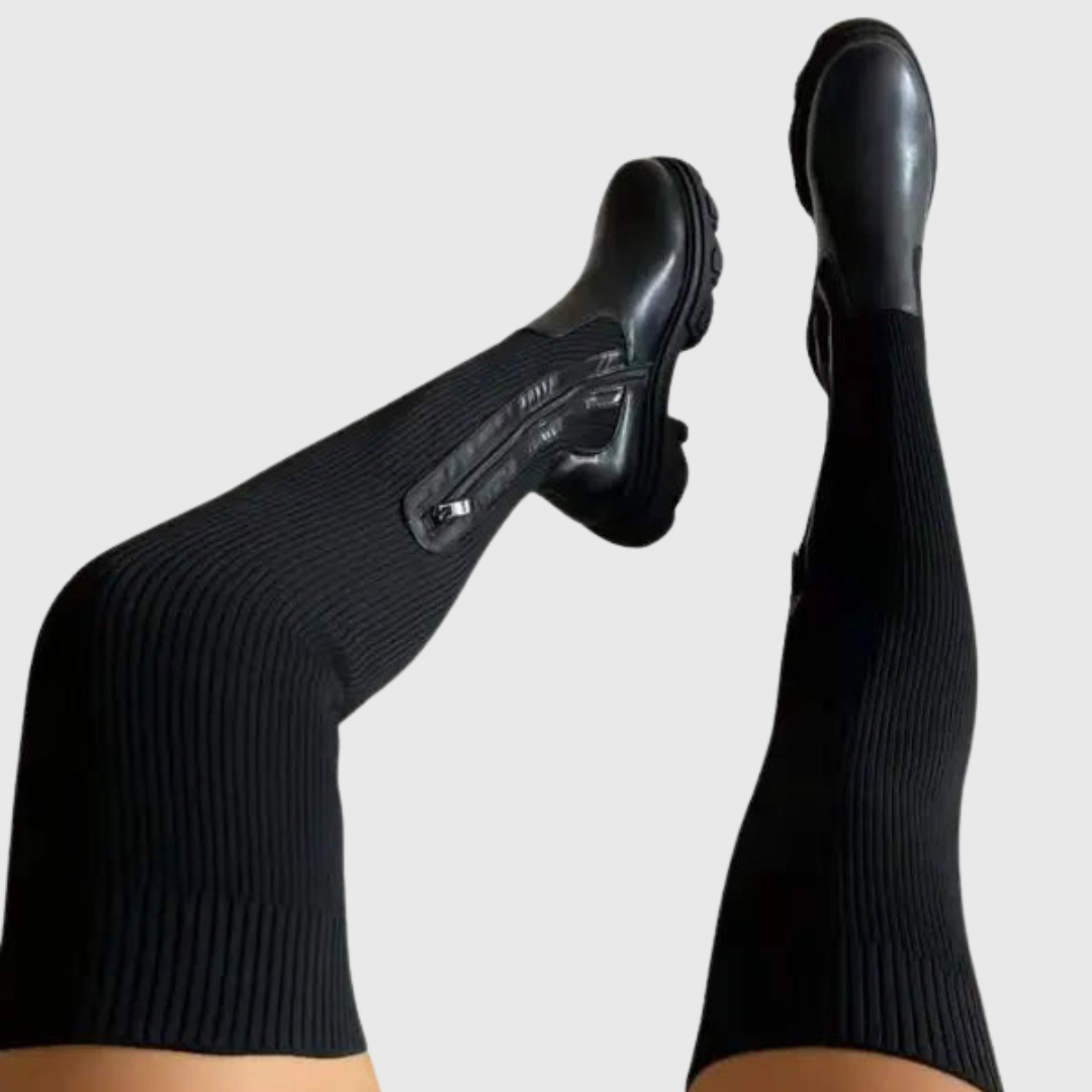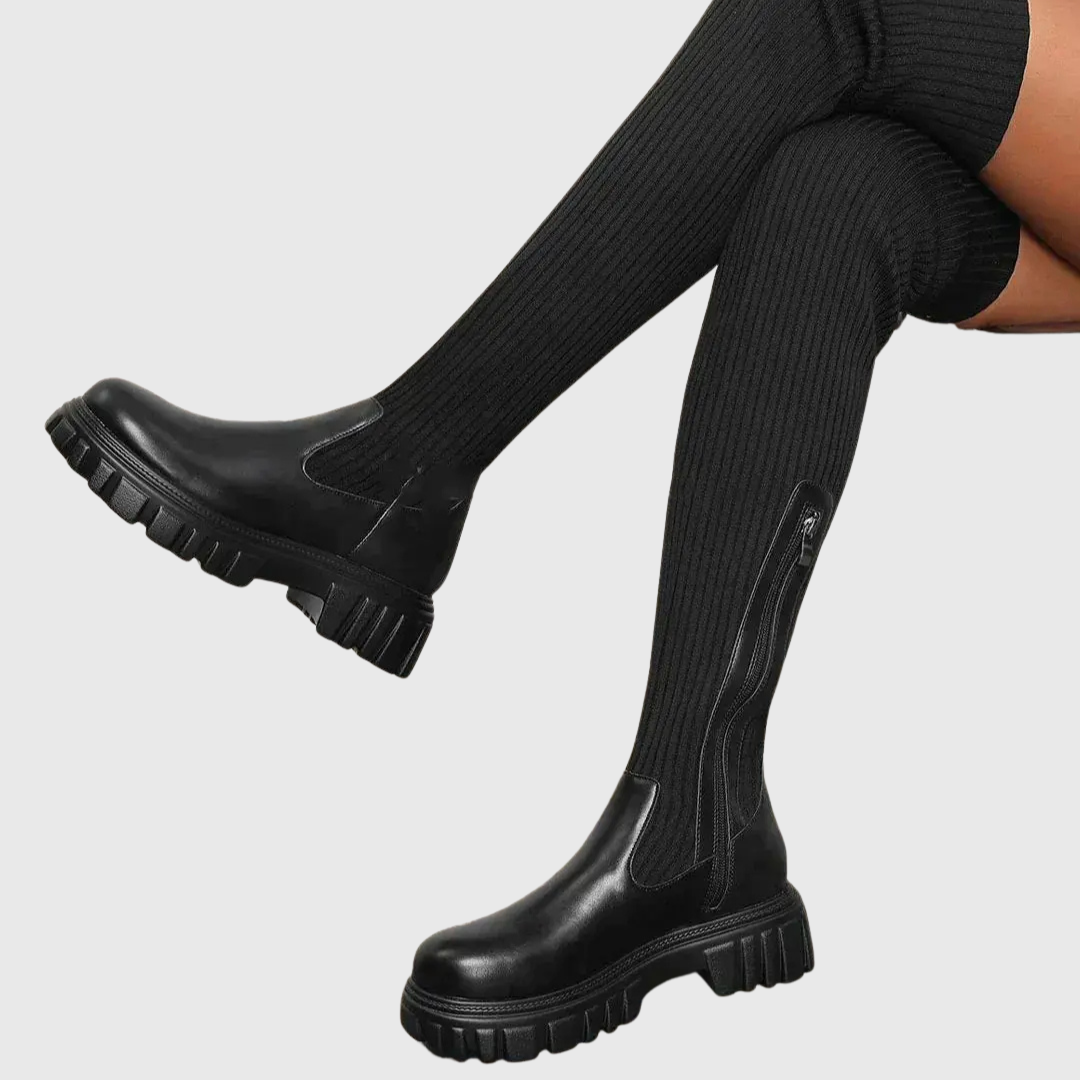 • Overknee-Schaft: Sorgt für eine verlängerte, strukturierte Silhouette, ideal für den Winter.