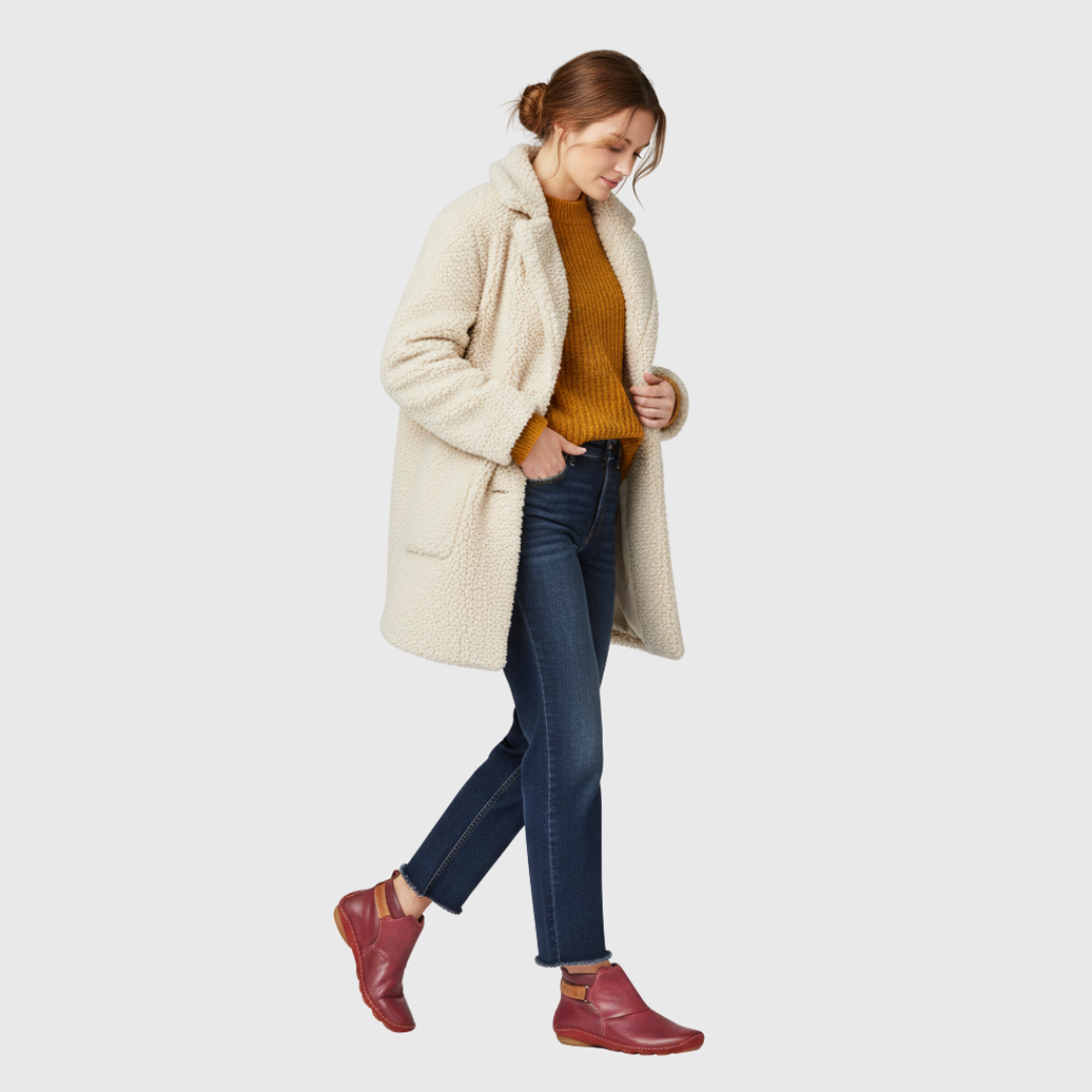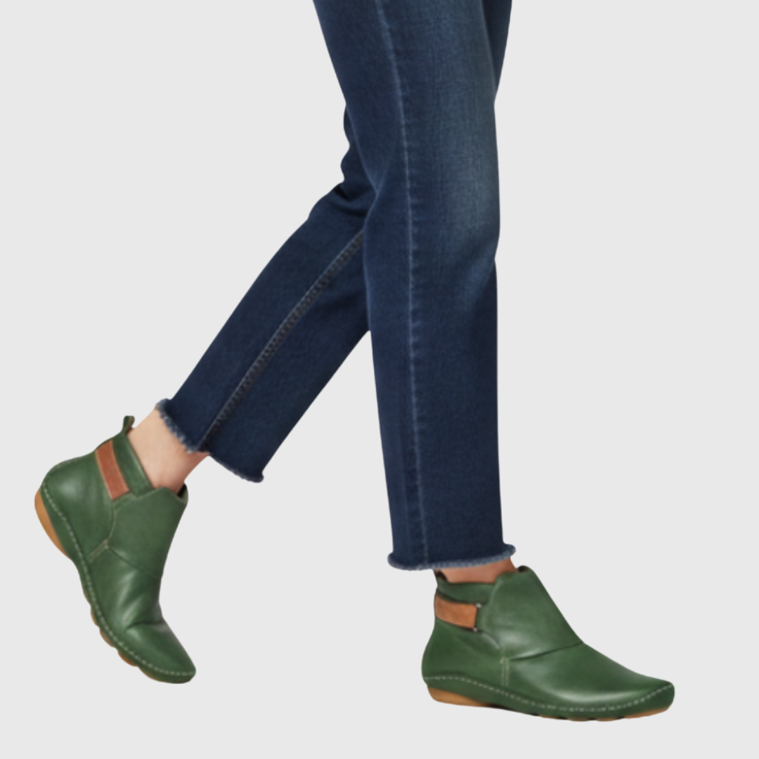 Knöchelhoher Schnitt: Bedeckt den Knöchel und lässt sich gut mit Stoffhosen, Jeans oder Strumpfhosen kombinieren.