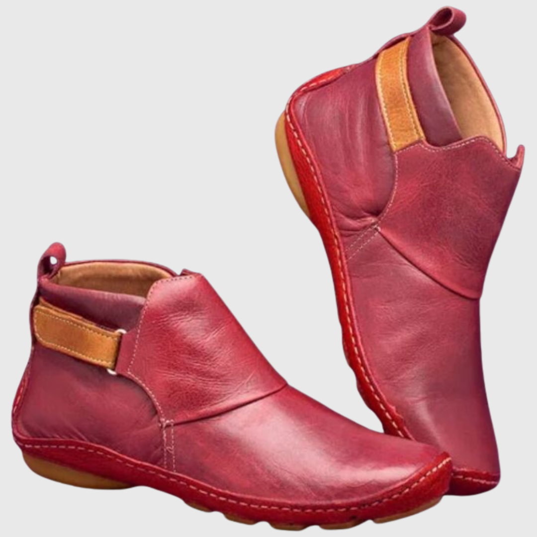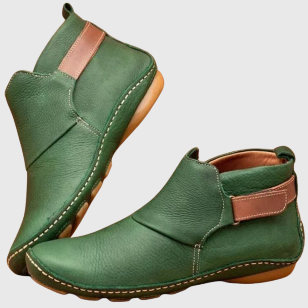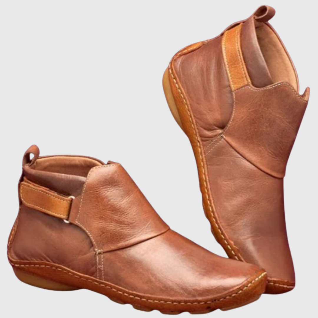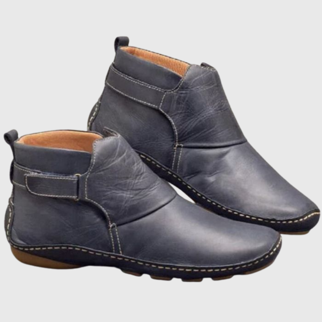 Diese Damen-Stiefeletten verfügen über eine flache Sohle und eine klare, knöchelhohe Silhouette mit seitlichem Riemendetail und sichtbaren Nähten. Die geschlossene, strukturierte Form macht sie geeignet für den täglichen Gebrauch über verschiedene Jahreszeiten hinweg.