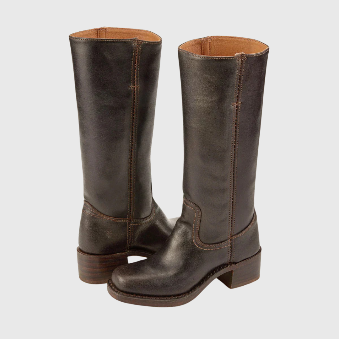 Block-Absatz: Bietet Stabilität und Höhe, wodurch die Stiefel stilvoll sind.
