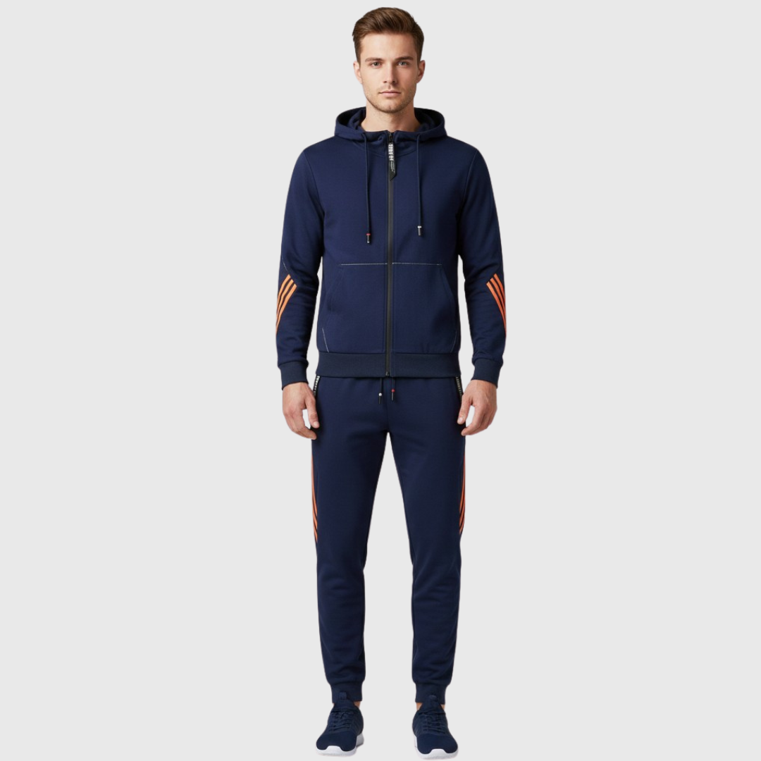 Men's sporty long-sleeved tracksuit with side stripes | Set