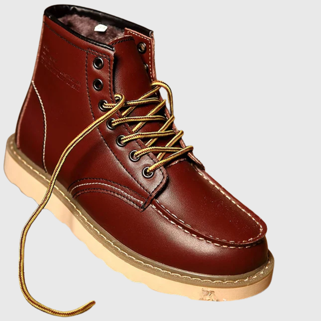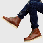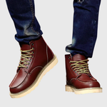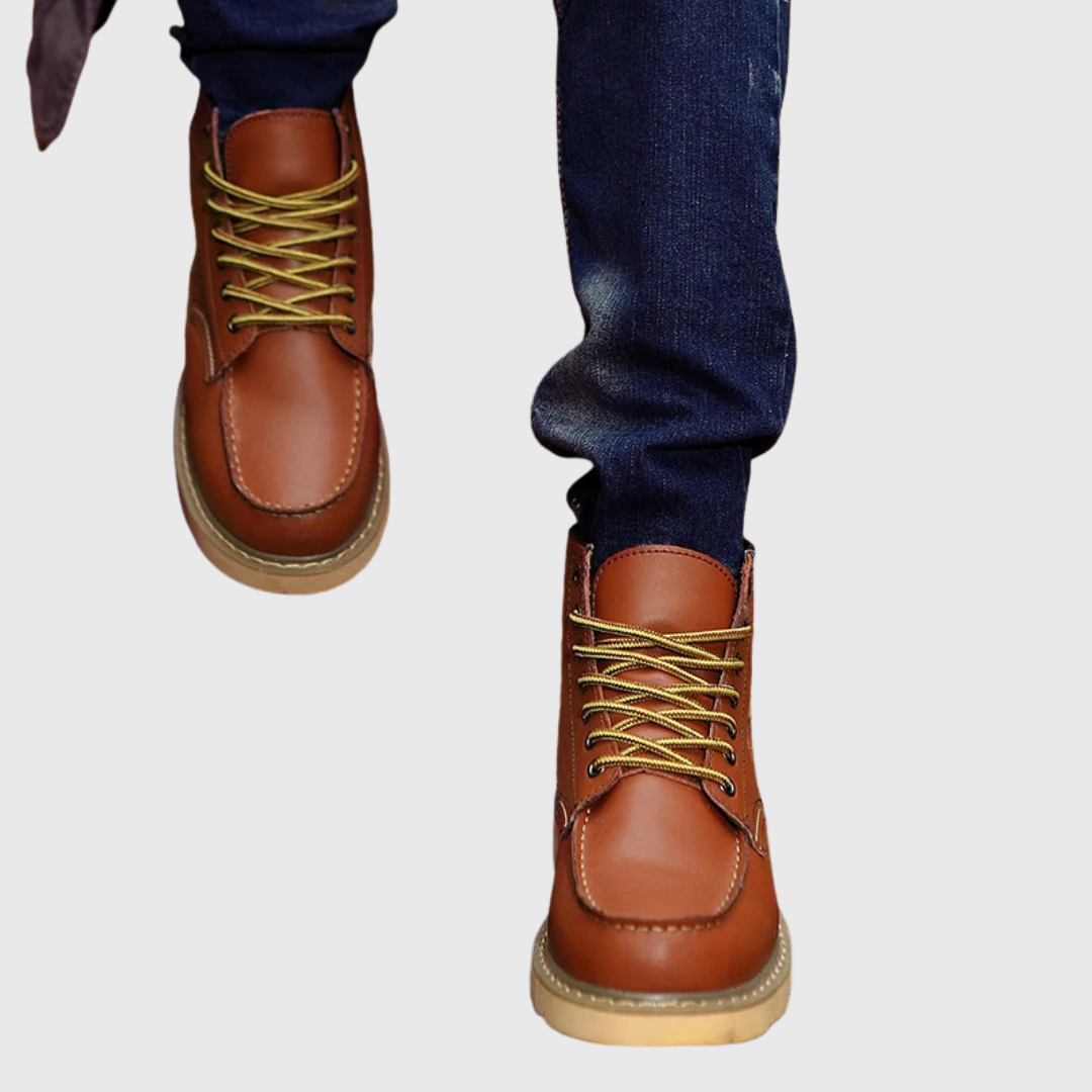 Diese klassischen Herrenstiefel verfügen über eine mittelhohe Schafthöhe bis zum Knöchel, eine flache Sohle und eine klare, strukturierte Silhouette. Die Schnürung vorne und die sichtbaren Nähte sorgen für ein traditionelles Erscheinungsbild, das sich für den täglichen Gebrauch und Spaziergänge eignet.