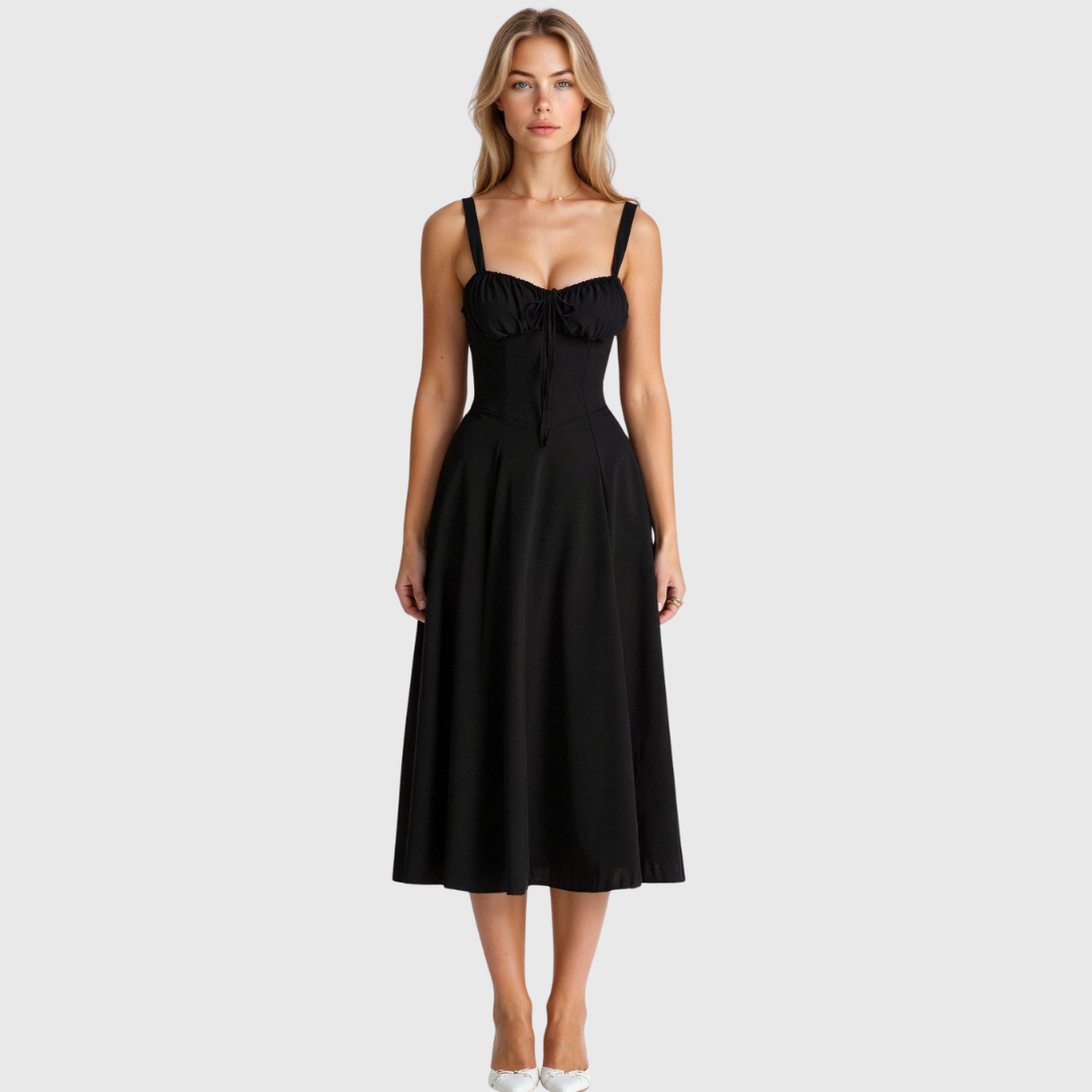 WARUM DU DAS ÄRMELLOSE MIDI-KLEID MIT VERSTELLBAREM TUNNELZUGDETAIL SCHÄTZEN WIRST?