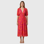 EIN LEBHAFTES MIDI-KLEID MIT FLORALEM PRINT UND PUFFÄRMELN!