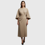 Das Jasmine Maxikleid verfügt über voluminöse Laternenärmel und einen schmeichelhaften Gürtel, der die Taille betont und eine feminine, strukturierte Silhouette schafft. Dieses Kleid, entworfen für formelle Anlässe und Abendveranstaltungen, bietet eine ausgewogene Kombination aus klassischem Charme und modernem Stil.