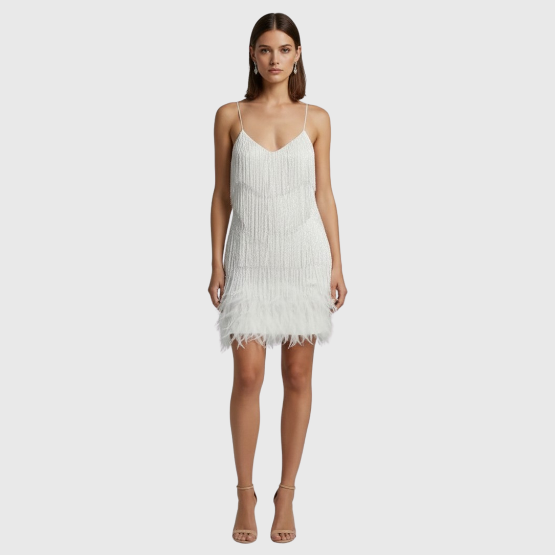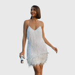 Frauen-Party Kleid mit Fransen und Federn | Mini